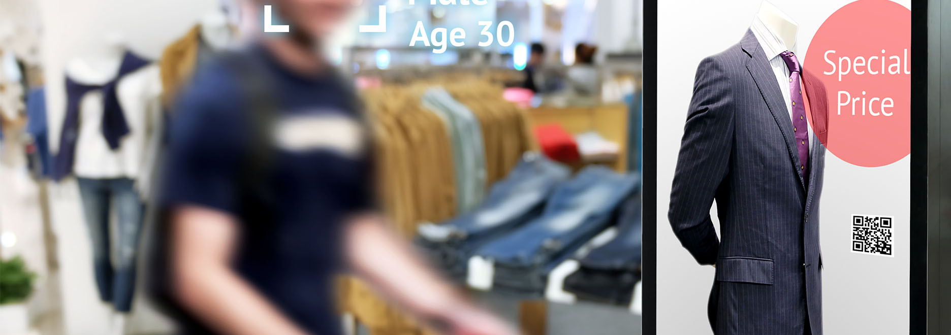 A l’intérieur d’un magasin, les écrans vitrines peuvent profiter d’une connexion au cloud pour présenter au client des informations, l’engager dans une démarche commerciale ou annoncer des évènements qui l’aideront dans son parcours.